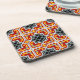 Serve your drinks on these Hard Plastic coasters with cork back with a traditional Barcelona tile design. The background is a deep red.