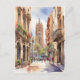 Barcelona watercolor art postcard