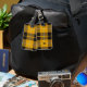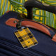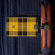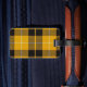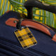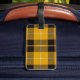 Luggage Tag with a bright yellow, black and white Scottish tartan with personalised monogram. Traditional Clan Barclay Dress Light Weight modern plaid pattern from 1842.