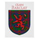 Barclay Scottish tartan plaid pattern design for the Barclay Clan Family underneath the red Lion Rampant Shield of Scotland.