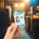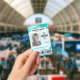 A modern and unique design featuring a teal green marbled background, photo, barcode and logo template. Easily customise this badge to your brand. -designed with ❤ by Zaubershirts-