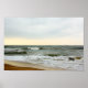Barcos y oleaje desde la orilla de la playa poster