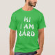 The Norwegian name Bård become funny in this sentence when you shall greet someone. Hi I am Bård (pronounced bored) This green t-shirt can be customised to give it you own unique look. You can customise the fonts type, fonts colour, size, change the text, remove and add text, add photo and more.