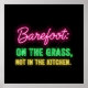 A high-quality graphic with the phrase "Barefoot: On the grass, not in the kitchen." This design is perfect for a wide range of products for those who enjoy witty, feminist, and nature-themed art.