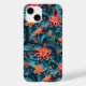 A beautiful iPhone 14 Case (barely there) with a seamless paper floral pattern against a blue background.