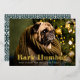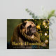 Whimsical holiday photo card features a favourite photo of your dog with "Bark Humbug" as a gold foil text overlay in retro lettering. Personalise with your custom greeting and names along the bottom.