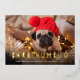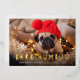 Whimsical holiday photo card features a favourite photo of your dog with "Bark Humbug" as a gold foil text overlay in modern cutout lettering. Personalise with your custom greeting and names along the bottom.