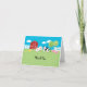 Cute and colourful note card with a farm theme. Features loveable farm animals, a red barn, trees and a picked fence on a bright green and polka dots blue background. This unisex design is perfect to thank your guest for that special gift. Add your own wording.