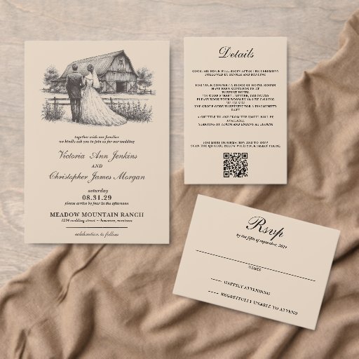 Barn Couple Wedding Invitation