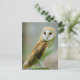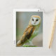 Animal card showing a barn owl. The barn owl (Tyto alba) is the most widely distributed species of owl, and one of the most widespread of all birds. The barn owl is nocturnal over most of its range but in Britain and some Pacific islands, it also hunts by day. Barn owls specialise in hunting animals on the ground and nearly all of their food consists of small mammals which they locate by sound, their hearing being very acute. They mate for life unless one of the pair gets killed, when a new pair bond may be formed. Breeding takes place at varying times of year according to locality, with a clutch, averaging about four eggs, being laid in a nest in a hollow tree, old building or fissure in a cliff. The female does all the incubation, and she and the young chicks are reliant on the male for food.