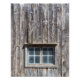 The rustic wood of an old barn, containing a dirty window, glows in the afternoon sun.