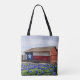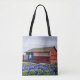 This bag has an weathered red barn with a Texas flag painted on it. The background is a field of bluebonnets with a blue sky.