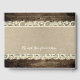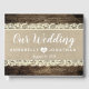 This rustic wedding guest book features a burlap look background bordered by delicate lace and rustic barn wood. Customise with your names, wedding date, and special quote on back. The perfect compliment to your rustic wedding decor.