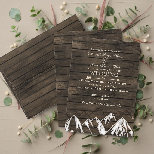 Barn wood woodland Camping Rustic Mountains Wedding Invites. Matching products also available.