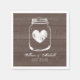 barn wood grain panel rustic country chic mason jar wedding napkins. Brown and white colours. Elegant vintage script typography design for summer marriage / garden style wedding party. Customisable background colours for bride and groom theme. Cute glass jar with faded love symbol. Romantic DIY theme for getting married in july, august, september etc.
