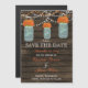 Barn wood mason jars orange flowers save the date magnetic invitation
