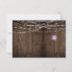 Rustic RSVPs featuring a mason jar filled with violet, purple, and lavender wildflowers with baby's breath and greenery and adorned with a purple ribbon. The back of the card features white string lights with a pale violet mason jar over a weathered barn wood background. If you would like this design on a matching product, or need help, please contact me through my store.