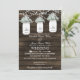 Rustic Barnwood, dangling string lights with baby's breath in a mason jar wedding invitations. Matching products also available.
