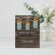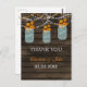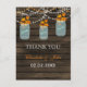 Rustic Barnwood, dangling string lights with fall leaves in a mason jar wedding Thank You Postcards. Matching products also available.