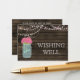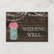 Rustic Barnwood, dangling string lights with pink flowers in a mason jar wedding wishing well cards. Matching products also available.