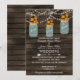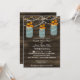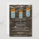 Rustic Barnwood, dangling string lights with Fall maple leaves in a mason jar wedding invitations. Matching products also available.