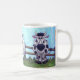 Fun and colourful Farm Animal Cocoa Mug featuring our original Cow, Sheep and Pig in front of a fence with a blue textured sky painted by Traci Van Wagoner (www.tracivanwagoner.com) is perfect for the animal lover you know.
