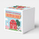 A cute party favour box that one can take home from a barnyard themed birthday party.
