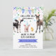 Children's farm animal barnyard birthday theme. Easy to personalise. Also available as a digital download! pig, cow, chick, horse watercolor graphics with confetti, bunting banners, party hats cute and whimsical
