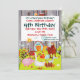 Personalise this birthday party template with your own party details. Features a cute Barnyard Farm Animals theme with a printed barn wood background. Has a colourful and funny horse, rooster, chicken, cow, pig, goat, goose, barn, windmill, apple orchard, sun, and flowers. The barn wood is just a printed design.