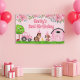 Make her birthday extra special with this adorable pink barnyard birthday banner featuring a party-ready horse, chick, puppy, tractor, apple tree, and a pink barn—all surrounded by watercolor flowers and greenery. Set against a soft pink background, this design is perfect for a farm-themed birthday celebration. The name and age are fully customisable, making it a perfect personalised touch for any little girl's special day. Ideal for party backdrops, photo booths, or dessert tables!