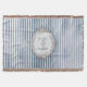 Vintage look throw is designed with Moire watercolor stripes, centred with Baroque floral medallion. Personalised with names ( 1st and last names or names of a couple). Grey blue stripes and the vintage look create a chic throw for a bedroom or den.