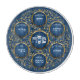 This Passover Seder plate may serve as a cutting board, display tray or candle holder during the week of Passover. The glass board is featured in the Baroque Blue Passover Collection, which includes matching products, such as a table runner, matzah covers, napkins, netilat yadayim handwashing towel, mugs, reclining pillows, and more.