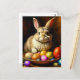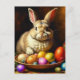 Baroque-style brown Easter bunny with colourful Easter eggs.