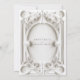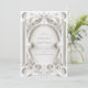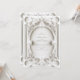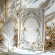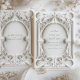 Embrace the grandeur of the Baroque period with this sumptuous wedding invitation. The design exudes opulence with its lavish, sculptural scrollwork in varying shades of ivory, cream, and white, reminiscent of elaborate plasterwork. The luxurious embossing effect gives depth to the floral and acanthus leaf motifs, creating an interplay of light and shadow that's both dramatic and delicate. In the centre, a clean, classic typeface presents the details of the couple's upcoming nuptials, set against the textured paper effect background. This invitation is a sophisticated choice for couples seeking to make a statement of timeless elegance on their special day.