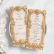 Elevate your wedding reception with this exquisitely designed floral menu. Featuring an opulent gold-toned ornate frame with intricate floral and scroll details, this menu card adds a touch of timeless elegance to your special day. The soft, creamy background complements the detailed artwork, creating a luxurious classical baroque art feel. This menu is perfect for a classic or vintage-themed wedding, ensuring your guests are impressed from the moment they arrive. Make your wedding feast memorable with this stunning piece.