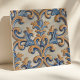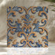 Baroque Scroll Damask Blue Gold Italian Style Tile
