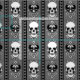 This gothic design has an ornate striped pattern of baroque ornaments, skulls, and hearts in a grey colour scheme.