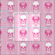 This gothic design has an ornate striped pattern of baroque ornaments, skulls, and hearts in a sweet pink and white colour scheme.
