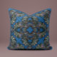 This teal pillow brings balance between richness and calm, with its intricate baroque details glowing against the dark base.