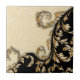 Elegant and ornately formal design featuring black and gold engraved scrollwork with pale linen textured damask background.