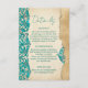 Add timeless charm to your wedding suite with this baroque turquoise floral lace wedding enclosure card. Designed with an elegant vintage lace motif and intricate scroll accents, this insert features a soft parchment-style background in muted beige with vibrant turquoise detailing — perfect for adding colour and texture to your wedding stationery. Ideal for rustic, boho, western, or vintage-inspired weddings, this card is a beautiful way to share reception details, accommodations, or your wedding website. Fully customisable and perfect for fall, spring, or destination weddings, it brings romantic flair to your invitation suite.