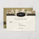 COLOR PALETTE: gold, metallic, Cream, black, gold, tan and green. DESIGN COLLECTION: A matching RSVP Response card for the invitation set of the same name. This is a sophisticated antique art design that mixes vintage book art with original art and graphic design work by Audrey Jeanne Roberts. Designed to look like "gold metallic" scroll work and swirls, the border is laid over a black border which is laid over an all over pattern of tossed lilies and a pearly, creamy white background. On the top is an ornate swirl frame and the bride and groom's monograms or initials. Easy to personalise with the template fields, your wedding invitation text can be custom worded for your own needs. On the reverse side is a large complete lily with a border of swirls and an oval frame that holds the bride and groom's names and wedding date and the same creamy white background. CUSTOM COLOR: There is a wide range of colours offered, but should you need a custom colour, just email us and we're happy to help.