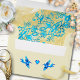 Ideal for weddings, anniversary invitations, or elegant correspondence, this Baroque-inspired envelope adds a luxurious finishing touch to your stationery suite. The turquoise lace details appear as if hand-painted over gold parchment, giving each piece an artisanal, heirloom feel. The vivid cobalt and aqua tones symbolise everlasting love and joy, making this envelope a stunning complement to any invitation, save the date card, or thank-you note from the same Baroque Vintage Mexican Wedding collection.