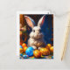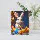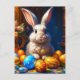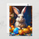 Baroque-style white Easter bunny with colourful Easter eggs.