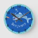 The clock did not take as long to arrive as I thought it might and was extremely well packaged. I didn't do the measurements so I didn't realize it is a little smaller than the average clock but that does not matter (just make sure you check if that's important to you).It is really nifty! It seems very solid and well made not flimsy at all. It has been going well and has kept good time in its few weeks on my wall. Nice product. Gets noticed too! Nicer in real life than the picture but true to the picture