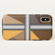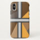 Barred iPhone cases. Barred is an abstract design created by Vexenwraith and consists of brown, orange, tan, and grey shapes behind silver gradient bars.