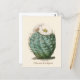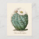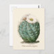 A fine art botany postcard from Curtis Botanical Magazine. A botanical illustration of a Barrel Cactus (Echinocactus Hexaedrophorus) with a blooming white flower.