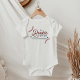This baby bodysuit features cute baseball lace lines, a baseball bat and a fun retro styled font with the words, "rookie of the yaer". This baby jumpsuit is perfect for a sports loving mum and dad to be or to celebrate a baseball themed first birthday party.