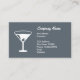 Modern Bartender business card template with classy cocktail glass logo icon. Customisable company name. Elegant martini glass with olive design for bar, pub, barkeeper, mixologist, mixology, drinking party event, alcohol store, liquor shop, nightclub, night club, dancing, barman, bartending, barmaid, alcohol, spirits, wine, work, job, events planner etc. Grey or custom colour background. Change quantity to get the cheapest bulk price per pack.