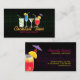 Customisable professional business card template for cocktail lounge, bars, clubs, barkeeper, bartender, mixologist, barman or barmaid, featuring colourful exotic cocktails on black (background can be changed).